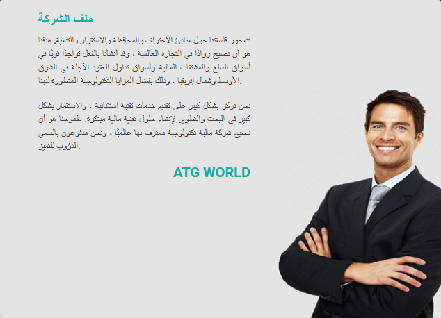 ادخل إلى الأسواق المالية العالمية مع ATG ، الوسيط الأكثر موثوقية وموثوقية. هنا في ATG ، نعتقد أن كل شخص يستحق الفرصة لتحسين الحياة من خلال الاستثمارات.